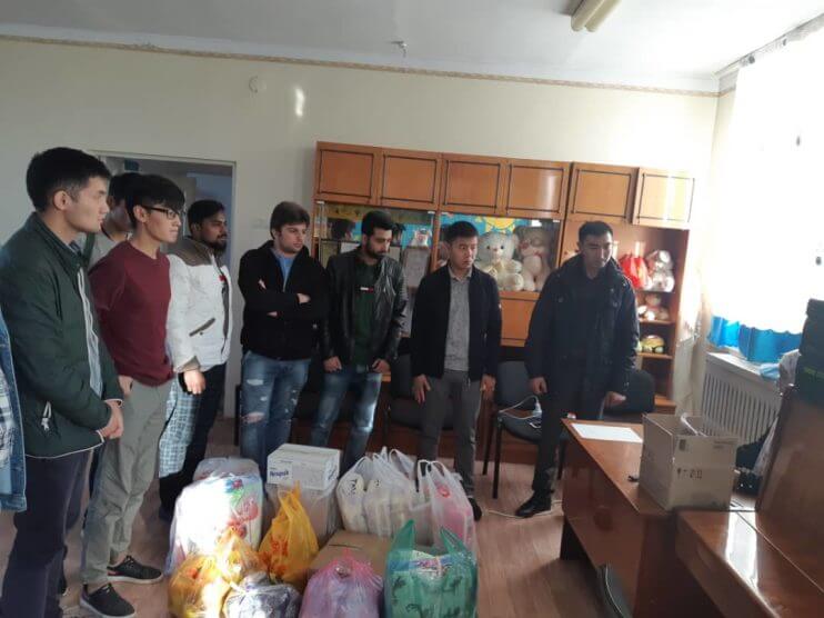 Благотворительность. Посещение детского дома “Алтын Уя”. Сотрудники кафедры со студентами. 2023г.