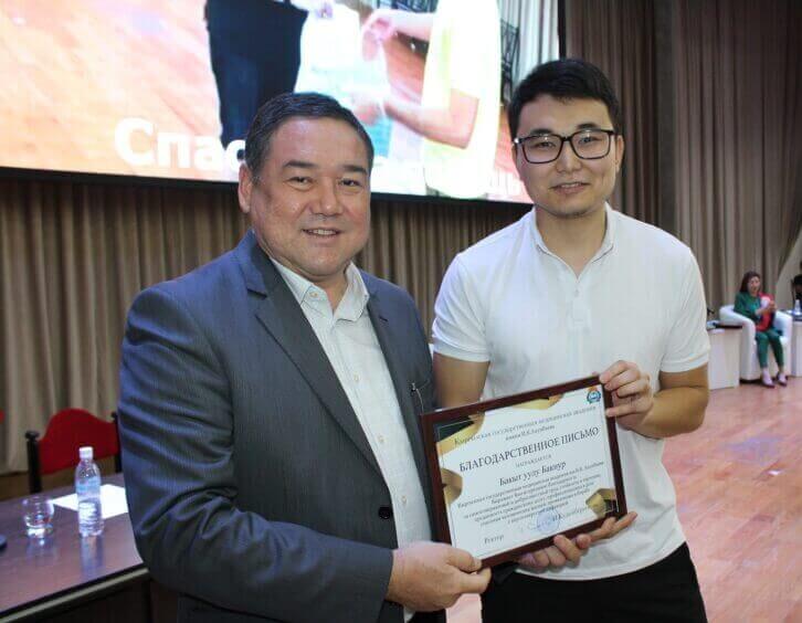 9 сентября 2020 года в конференц-зале Медакадемии Кыргызстана состоялась торжественная церемония вручения почетных грамот, благодарственных писем, медалей преподавателям, студентам, ординаторам вуза за добросовестный труд в борьбе с COVID-19 во время всеобщей пандемии. Декан факультета Эрбаев А.Т. был награжден памятной медалью «За заслуги перед КГМА».
