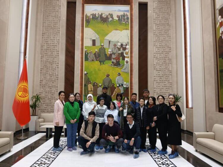 Преподаватели и студенты 1-2 курсов медицинского училища при КГМА во время экскурсии в здании «Ынтымак-Манас Ордо» - архитектурного символа нового Кыргызстана Администрации Президента