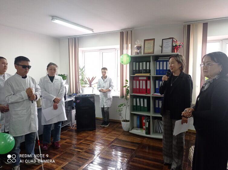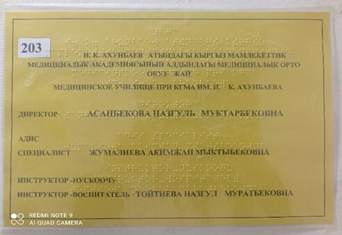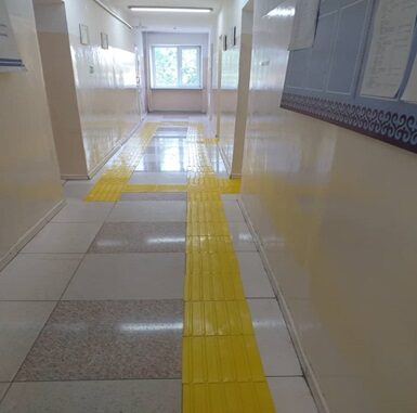 В 2023-2024 учебном году установлена специальная тактильная плита, проведена желтая линия по аллее для безопасного и правильного передвижения студентов с общежития до учебного корпуса и внутри учебного корпуса.По рельефно-точечному шрифту Брайля вывешены таблички на дверях с указанием номера и название аудитории, так же выпущены несколько буклетов для проведения открытых уроков, в библиотеке имеются аудиокниги, аудиолекции и книги по рельефно- точечному шрифту Брайля.