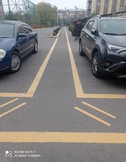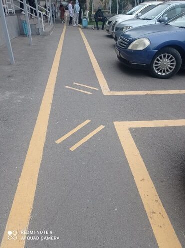 Желтая линия по аллее для безопасного и правильного передвижения студентов с общежития до учебного корпуса и внутри учебного корпуса.