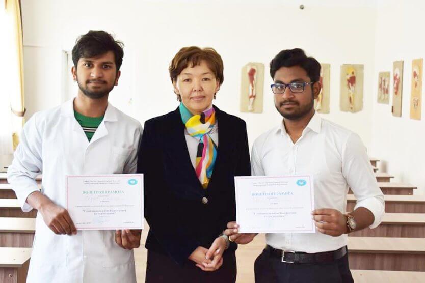 Студенты факультета «Лечебное дело с английским языком обучения» Медакадемии имени И.К. Ахунбаева Сахаваж Аалам и Сагар Санап заняли второе и третье места соответственно на межвузовской студенческой научно-практической конференции «Устойчивое развитие Кыргызстана: взгляд молодёжи», прошедшей на базе Международного университета Кыргызстана. Им также были вручены почетные грамоты МУК.