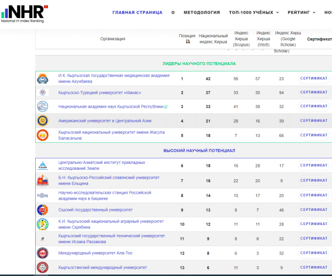 Отличные новости в мире науки! Кыргызская государственная медицинская академия им.И.К.Ахунбаева вошла в ТОП-5 Национального рейтинга Кыргызстана по индексу Хирша.