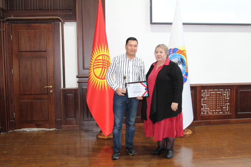 • Дипломом 2 степени – Муратова Чолпон – 6 курс ЛД-2 и Дилдебеков Азат – 6 курс, ЛД-1. Научный руководитель: Тилекеева Уланкул Муктаровна, д.м.н., профессор, заведующая кафедрой базисной и клинической фармакологии
