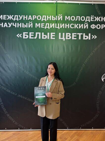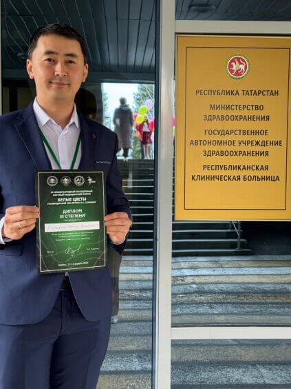 С 11 по 13 апреля 2024г в Казанском государственном медицинском университете прошел XI Международный молодежный научный медицинский форум «Белые цветы», посвященный 150-летию Н.А.Семашко. В рамках форума проведена 30-ая Международная научно-практическая конференция молодых ученых, в которой аспиранты КГМА выступили с докладами и заняли призовые места. В секции «Хирургия, травматология, урология» Б.А. Атакулов (аспирант кафедры факультетской хирургии им. акад. К.Р. Рыскуловой, науч. руководитель – д.м.н., проф. Е.Ж. Жолдошбеков) получил диплом III степени. В секции «Фармация» П.Т. Уралиева (аспирантка кафедры фармакогнозии и химии лекарственных средств, науч. руководитель – к.ф.н., доцент А.Д. Мураталиева) отличилась дипломом III степени.