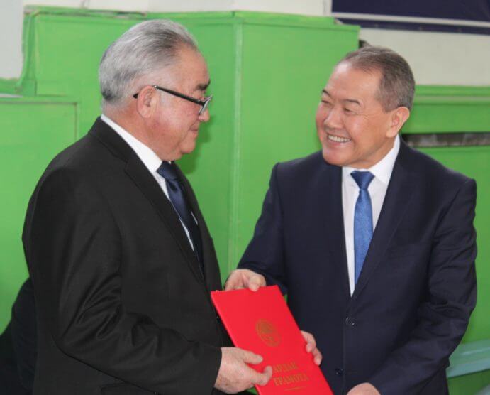На днях в связи с Международным днём родного языка старшая преподавательница кафедры кыргызского языка КГМА имени И.К. Ахунбаева Нурида Касымбекова за вклад в развитие государственного языка в вузе награждена нагрудным знаком “Кыргыз тили” Национальной комиссии по государственному языку при Президенте Кыргызской Республики. Награду вручил председатель ведомства Назаркул Ишекеев.