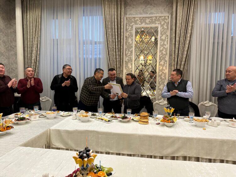 На днях все последователи профессора собрались, чтобы выразить признательность своему "учителю-наставнику" - научному руководителю. Они наградили Сабырбека Джумабекова золотым орденом с надписью "УЛУУ УСТАТ". Орден изготовлен из золота и серебра местными ювелирами. Поздравить с радостным событием приехали коллеги из Германии.