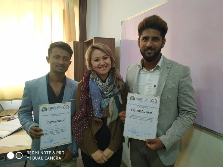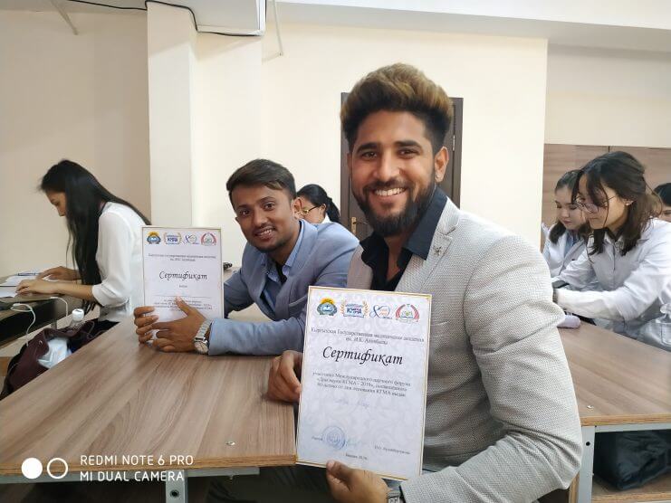 В рамках “Дней науки -2019» два иностранных студента первого курса КГМА имени И.К. Ахунбаева (Асбаб Ахсан Адби и Авинаш Верма) выступили с докладом на тему "Трудности и их преодоления при изучении русского языка иностранными студентами". Их работа отмечена сертификатами мероприятия.