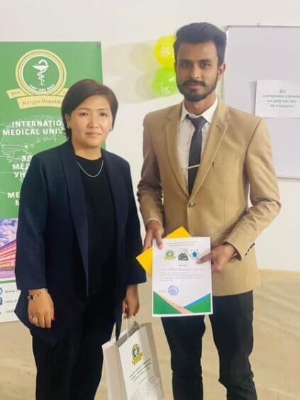 Студенты КГМА им. И.К. Ахунбаева продемонстрировали высокий уровень подготовки и 5 из них заняли призовые места. По результатам всех этапов наша студентка фармацевтического факультета Гулбуддин Сафья (научный руководитель Айдарова Ж.Т) заняла 1 место, а студент лечебного факультета Слоев Оджалан (научный руководитель Колпочбаева М.Б.) занял 3 место. Среди иностранных студентов 1 место заняла Sania Tayyab Ali (научный руководитель Боронбаева Э.А). 2 место занял Shahid Muhammad (научный руководитель Сапаралиева А.Н.) и 3 место занял Beaty Khatoon (научный руководитель. Боронбаева Э.А).