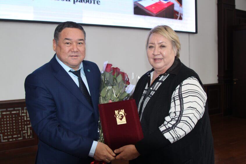 и с Почетной грамотой Бишкекского городского кенеша проректора по учебной работе вуза К.Ырысова,