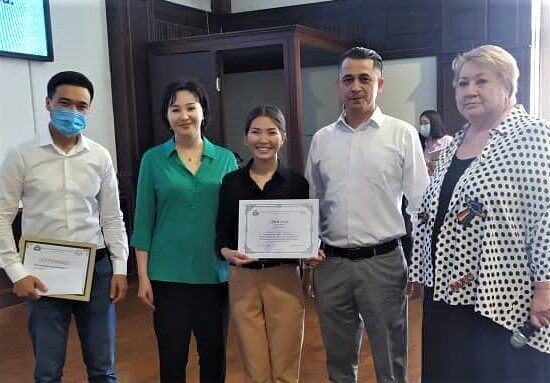 3 место - Батарбекова Шолпан. Уровень тревожности среднего медицинского персонала в период пандемии COVID-19. Медицинский университет Астана, кафедра общей врачебной практики с курсом доказательной медицины. Сертификат на 10 тыс. сомов от общественного фонда Алишера Абдраманова.