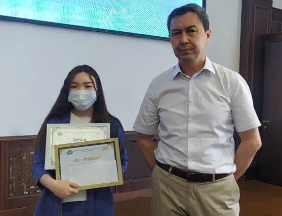 1 место - Досматова Аида. Клинико-эпидемиологическая характеристика коронавирусной инфекции. Кафедра инфекционных болезней. Научный руководитель Муканбеткеримова Г.М. – 4,71 баллов. Вручен сертификат на 24 тыс.сом от семьи Ахунбаевых.