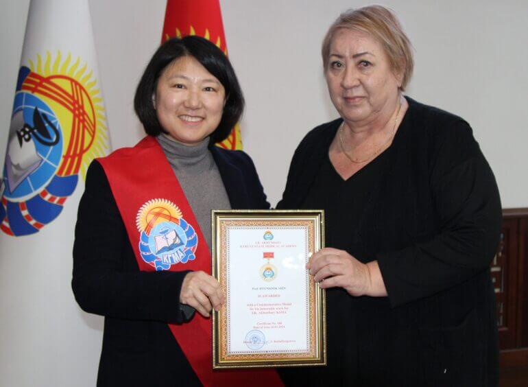 Профессор колледжа  Сестринских наук Университета Кенг Хи Корея Шин Хен Сук награждена "Медалью за заслуги перед КГМА", Матраимова Мээрим Элисовна - судебный исполнитель ПССИ Октябрьского района г.Бишкек, Эсенгулова Алина Улановна - судебный исполнитель ПССИ Октябрьского района г.Бишкек, Асанов Адилет Кубанычбекович - лейтенант милиции УВД Октябрьского района г. Бишкек награжден Почетной грамотой КГМА.