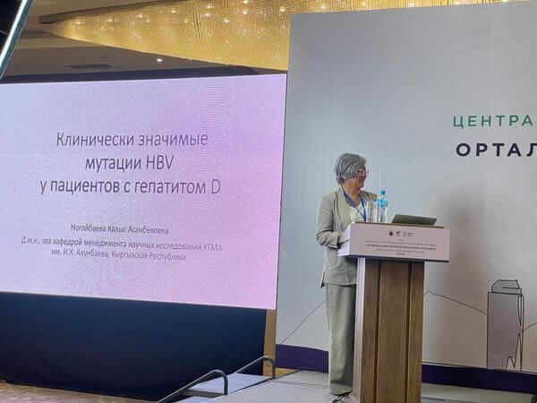 В этом конгрессе участвовала и выступила с докладом на тему: "Клинически значимые мутации вируса геппатита D" доцент кафедры инфекционных болезней КГМА им.И.К.Ахунбаева Калыс Ногойбаева.