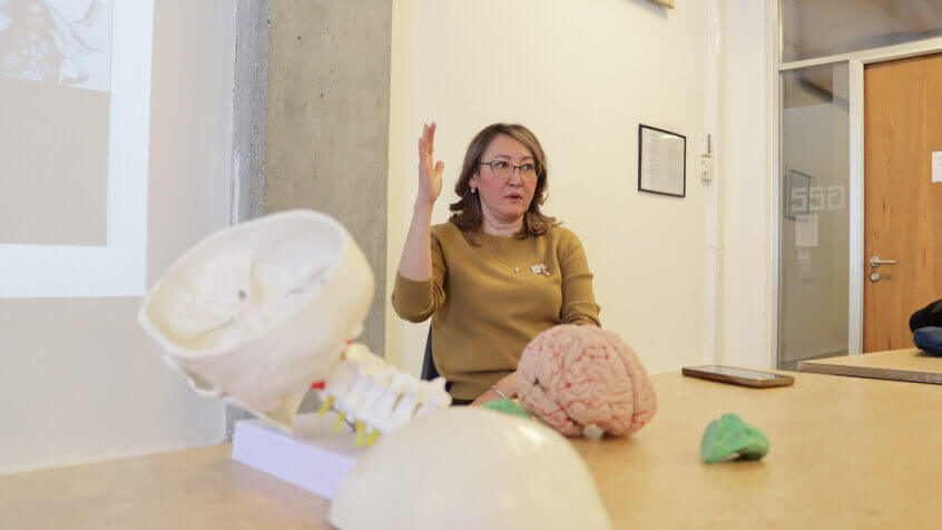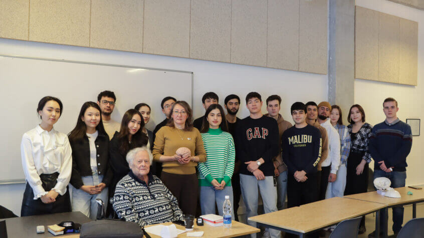 23 января заведующая кафедрой неврологии и клинической генетики им. А.М. Мурзалиева д.м.н., доцент Элмира Мамытова Элмира по приглашению профессора Американского университета Центральной Азии (АУЦА) Charles Carlson прочитала лекцию на английском языке студентам на тему “Speech and higher function of brain and its abnormalities” в переводе на русский означает “Речь, высшие мозговые функции и их нарушения”.