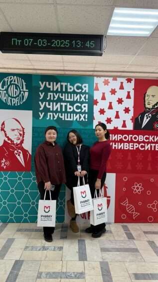 Клинические ординаторы кафедры детской хирургии,анестезиологии и реаниматологии-Асилбек кызы Бегимай и Алмазбекова Сезим, кафедры пластической и реконструктивной хирургии имени М. А. Матеева-Насипбеков Улан и аспирант кафедры оториноларингологии-Жеенбекова Мадина успешно завершили научно-практическую стажировку с 10.02.2025 по 07.03.2025 в ФГАОУ ВО РНИМУ им. Н.И. Пирогова Минздрава России (Пироговский Университет). Обмен был реализован в рамках договора о сотрудничестве между ФГАОУ ВО РНИМУ им. Н.И. Пирогова Минздрава России (Пироговский Университет) и Кыргызской Государственной Медицинской Академией им. И.К. Ахунбаева.