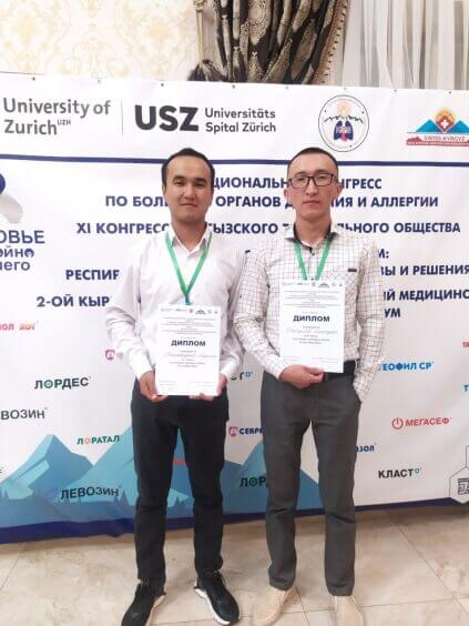 Кроме того, в рамках данного мероприятия был проведен конкурс молодых ученых на английском языке, в котором приняли участие студенты КГМА и заняли призовые места: студент 5 группы 6 курса факультета лечебное дело Раимбердиев Мадияр занял 1 место и был награжден поездкой в г. Сеул для участия в конгрессе Азиатско-Тихоокенского респираторного общества, студент 5 группы 6 курса факультета лечебное дело Рыскулов Искендер занял 2 место и был награжден денежным призом.