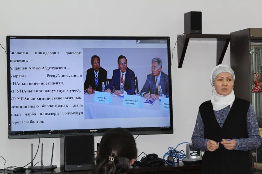 - Академик, б.и.д. Алмаз Абдулхаевич Алдашевдин өмүр баяны жана анын жүргүзүлгөн илимий изилдөөлөрү. Акынбекова Н.Б. аспирант. Научный руководитель д.б.н., доцент Махмудова Ж.А. Кафедра биохимии с курсом общей и биоорганической химии им.А.Дж.Джумалиева КГМА им. И.К. Ахунбаева.