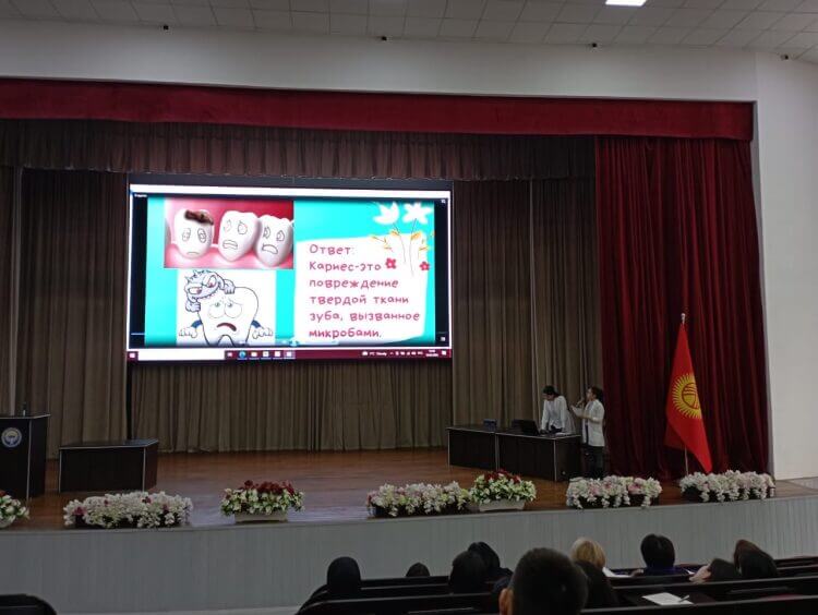 Студенты 1-курса стоматологического факультета КГМА имени И.К.Ахунбаева осваивают новое, неизведанное по волонтерской практике, тот есть готовятся к своим первым урокам перед будущими пациентами. 16-марта 2022 года марта была подведена контрольная по домашней работе, каждая группа имела возможность продемонстрировать свою работу, план урока, методы работы со школьниками, и с какой информацией собираются делиться.