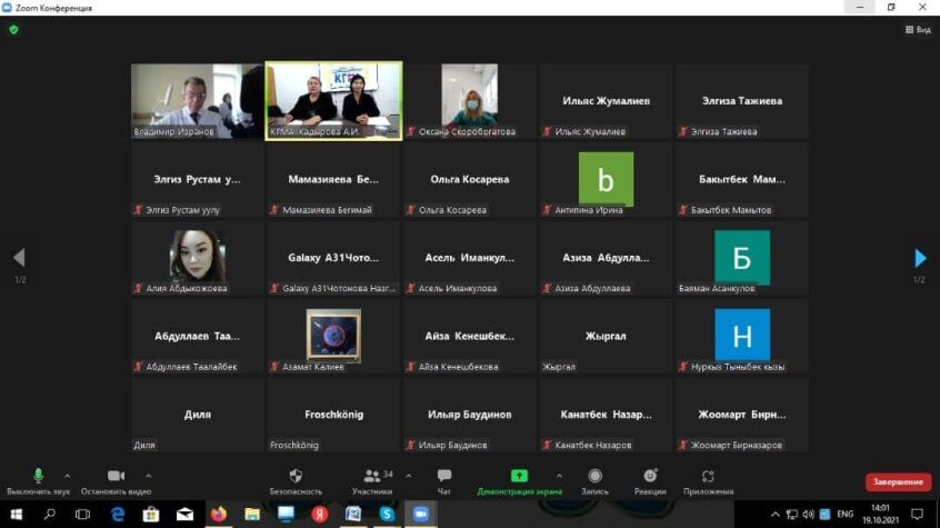 19-21 октября 2021 года в Кыргызской государственной медицинской академии И.К.Ахунбаева И.К.Ахунбаева прошли онлайн-уроки школы УЗИ на тему «УЗИ диагностика молочных желез от нормы к патологии». Организовали мероприятие заведующая кафедрой Лучевой диагностики и лучевой терапии доцент А.Кадырова совместно с зав. Кафедрой БФУ им. Канта (Калининдград, РФ), профессором В.А. Израновым. Цель уроков – повышение грамотности в ультразвуковой диагностике и сопоставление УЗ картины с гистологической картиной.