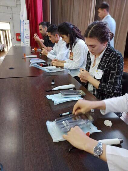1-го июня сего года в КГМА им.И.К.Ахунбаева прошла ежегодная студенческая олимпиада по терапевтической стоматологии. В олимпиаде приняли участие шесть команд. Программа олимпиады была разделена на пять частей: приветствие, доклад, тестирование, конкурс талантов и практическая часть.