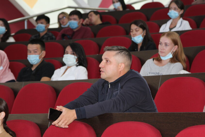 С приветственной речью выступила проректор по международному сотрудничеству и стратегическому развитию, профессор – Гульмира Джумалиева. На встрече участвовали студенты, аспиранты, преподаватели вуза также, прибывший эксперт из Германии – Кристиан Гукш.
