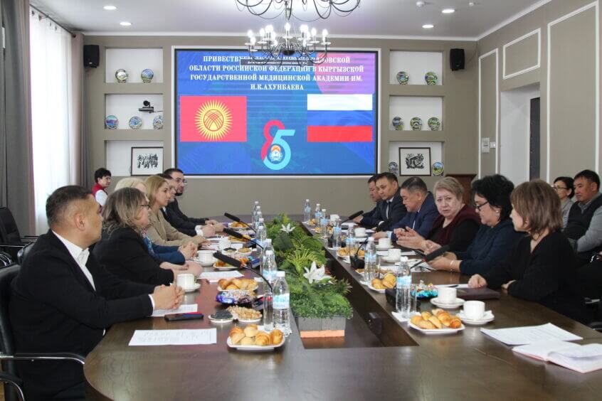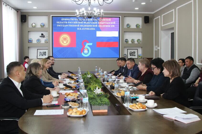 Сегодня, 4 марта 2025 года в КГМА им.И.К. Ахунбаева прошла встреча ректората медакадемии с официальной делегацией Свердловской области РФ. На встрече были подняты вопросы организации совместных образовательных проектов и исследований, развития академической мобильности для студентов и преподавателей, а также возможности развития взаимоотношений в будущем.