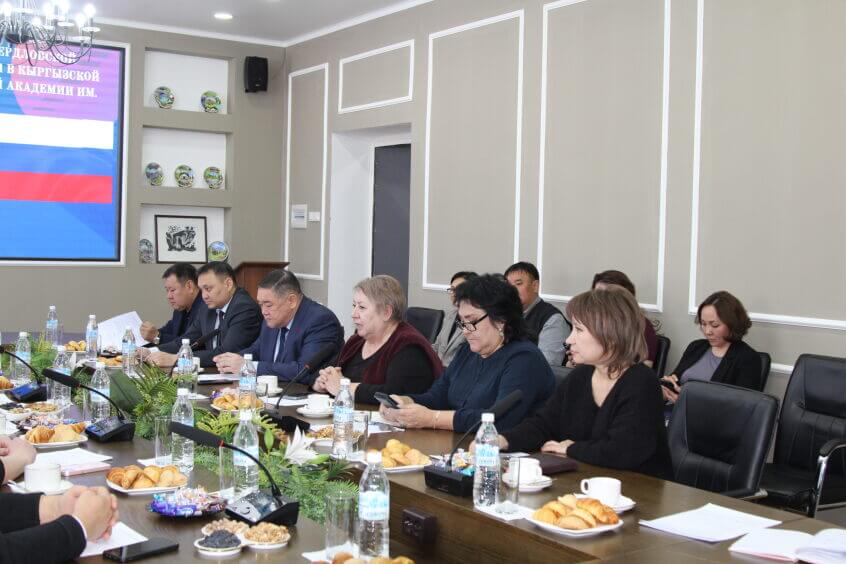 От Кыргызской Государственной Медицинской Академии присутсвовали: Индира Кудайбергенова - ректор КГМА им.И.К.Ахунбаева; Гульмира Джумалиева - проректор по международным связям и стратегическому развитию; Кенешбек Ырысов - проректор по учебной работе; Ниязбек Маматов - проректор по научной и лечебной работе; Гульнара Исакова - начальник учебно-методического отдела; Турниса Юсупова - заведующая международным отделом, Алтынай Байтелиева - заведующая отделом научно-инновационной и клинической работы; Азамат Кылчыкбаев - декан факультета последипломного медицинского образования; Айнура Кульжанова - заместитель декана факультета последипломного медицинского образования; Айбек Ибраимов - директор Центра непрерывного и дистанционного обучения.