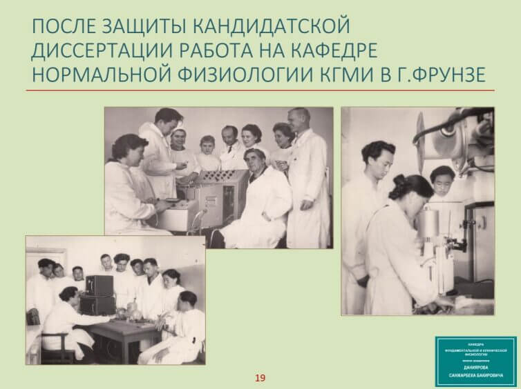 Пятнадцатилетним подростком он поступил на подготовительные курсы при КГМИ и вскоре стал студентом лечебного факультета. В 1948 году, с отличием окончив институт, юный выпускник поступает в аспирантуру кафедры нормальной физиологии Кыргызского государственного медицинского института и вскоре, в числе лучших аспирантов, направляется в Ленинград, в центр физиологической мысли – Институт физиологии имени Павлова Академии наук СССР.