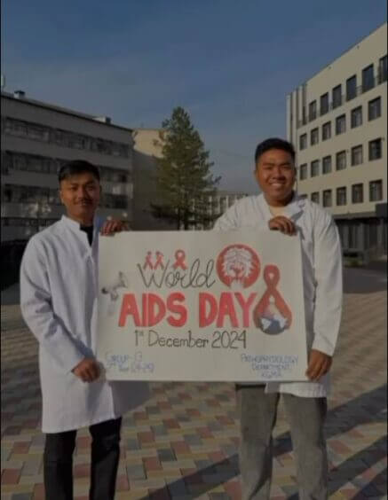 2 декабря 2024 года студенты 13 группы 2 курса факультета ЛДАЯО 2 КГМА им.И.К.Ахунбаева вместе со куратором кафедры патофизиологии провели кураторский час, посвященный Всемирному дню борьбы со СПИДом.