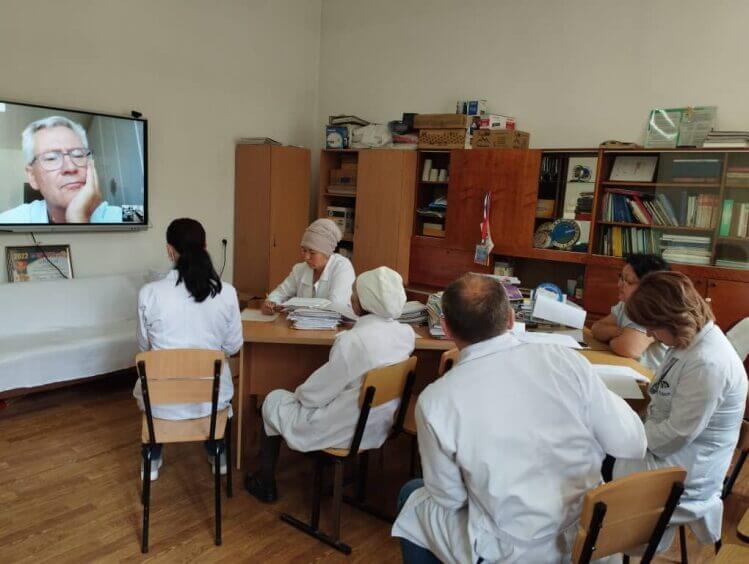 В рамках международного сотрудничества, организованного КГМА им.И.К.Ахунбаева  на кафедре пропедевтики внутренних болезней с курсом эндокринологии еженедельно проходит регулярная онлайн-встреча с экспертом Фонда немецкого сотрудничества SES Маттиасом Брайдертом по обучению и обсуждению сложных гепатологичекских, гастроэнтерологических и эндокринологических больных.