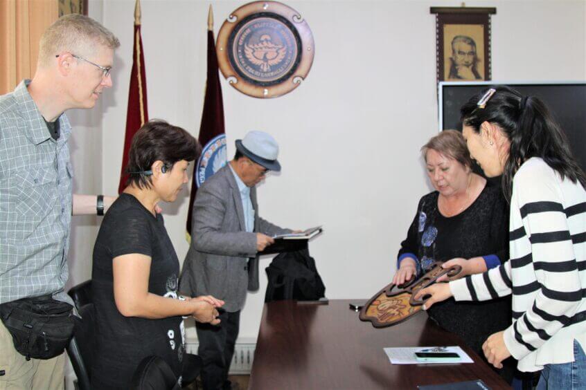 В Медицинскую академию им.И.К.Ахунбаева прибыли представители компании Favors camp м-р Джин и представители благотворительной организации Мессенжерс оф Мерси (Церковной Организации) мистер Мак Садлер и миссис Сью Садлер. Гостей в своем офисе встретила профессор Индира Кудайбергенова.