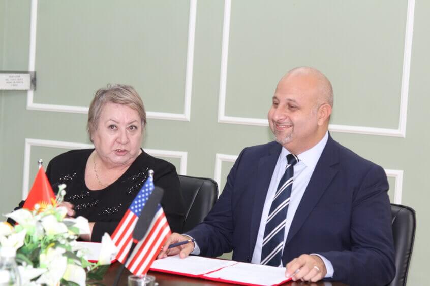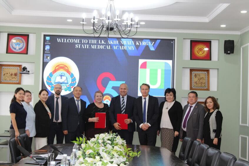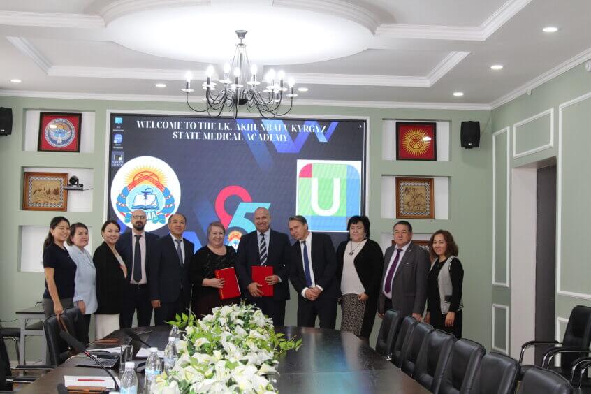 От КГМА им. И.К. Ахунбаева присутствовали ректор, д.м.н., профессор - Индира Кудайбергенова, проректор по международным связям и стратегическому развитию - Гульмира Джумалиева, проректор по учебной части - Кенешбек Ырысов, заведующая отделом научно-инновационной и клинической работы - Алтынай Байтелиева, заведующая отделом по международным связям - Турниса Юсупова.