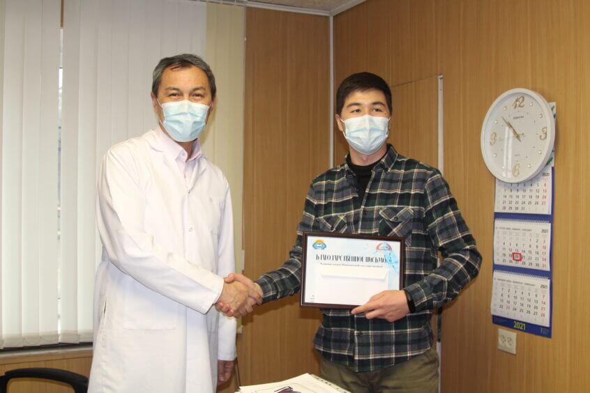 Сегодня, 20 января сего года в Медицинском центре КГМА состоялось вручение благодарственного письма администрации Медакадемии Кыргызстана за активное сотрудничество и участие в мероприятии посвященная «Всемирному дню науки за мир и развитие» в рамках «Ярмарки 2020» кафедре факультетской хирургии академика К.Р.Рыскуловой.