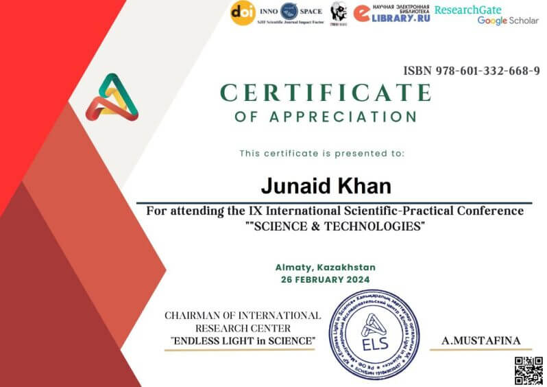 Научная статья «Заболеваемость и смертность от инфекционных и паразитарных заболеваний в Кыргызской Республике в многолетней динамике» студента 5 курса факультета «Лечебное дело с английским языком обучения» Джунаид Кхана (Junaid Khan) опубликована в научном журнале «Endless Light in Science». Руководитель Ырысова Миргуль Бакирбаевна.