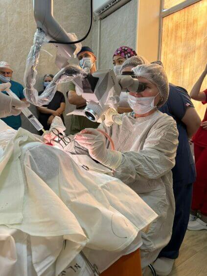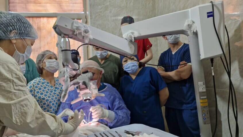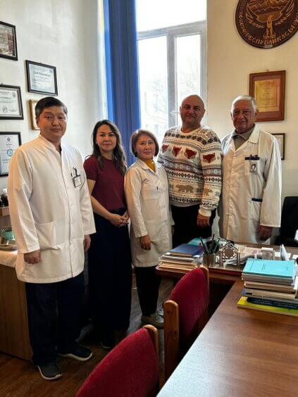Для проведения операции приглашен отохирург-имплантолог Гедриус Гилис (г.Каунас, Литва). К.м.н. Жолдошева Ч.А., Нуркеев Н.Б. и ассистент кафедры Мамажанова С.А. освоили навыки постановки кохлеарного импланта и намерены развивать этот опыт в нашей стране.