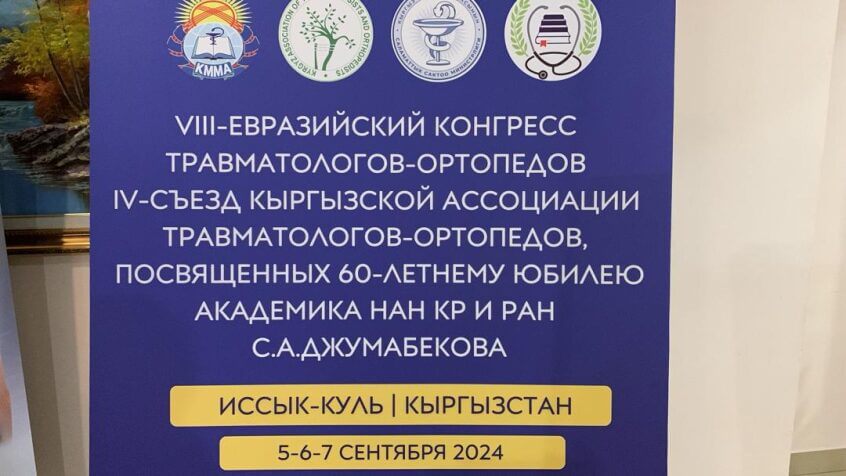 Сегодня, 5 сентября на берегу жемчужины Кыргызской земли озера Иссык-Куль проводится VIII-Евразийский конгресс травматологов-ортопедов и IV-Съезд кыргызской ассоциации травматологов-ортопедов, посвященные 60-летнему юбилею академика НАН КР и РАН С.А. Джумабекова. Мероприятие будет проводиться три дня, 5-6-7 сентября 2024 года в с.Бает Иссык-Кульской области.
