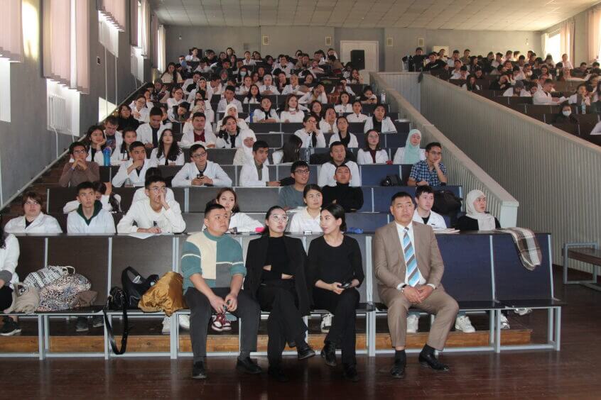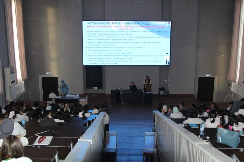 Деканат Лечебного дела №2 совместно с деканатом фармации организовали гостевую лекцию специалиста Центра СПИД для студентов, с целью повышения осведомленности о профилактике и лечении ВИЧ-инфекции, а также врачей в борьбе с этим заболеванием.