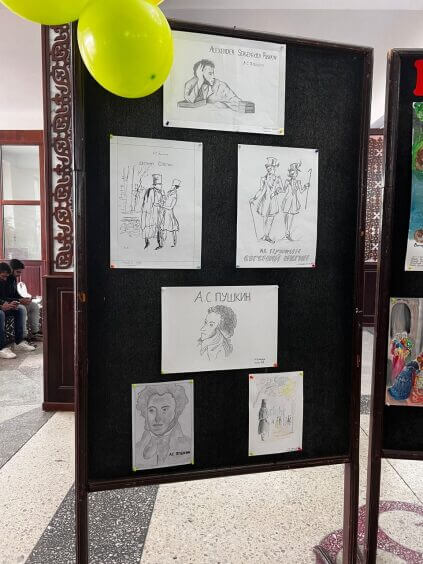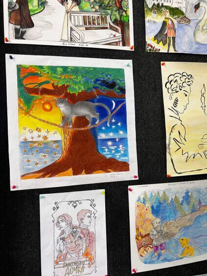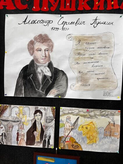 На выставке представлены уникальные рисунки, цитаты и редкие факты из жизни Пушкина, которые позволяют заглянуть в мир его творчества и вдохновения.