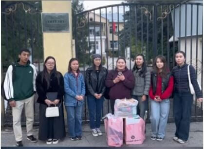 Студенты посетили социально-стационарное учреждение "Үмүт" - дом для престарелых и лиц с инвалидностью. Студенты оказали гуманитарную помощь в виде продуктов питания и мыломоющих средств. Молодёжь призывает всех проявить уважение и заботу, предлагает продолжить такого рода акцию, которая воспитывает чуткое, внимательное, бережное отношение подрастающего поколения к пожилым.