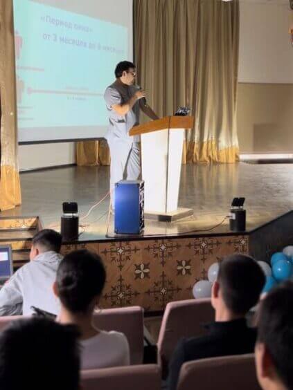 1 декабря 2023 года по приглашению учебно-воспитательного комплекса школы-гимназии №70 аспирант, ассистент кафедры семейной медицины додипломного образования КГМА им.И.К.Ахунбаева Дастан Кушубеков в рамках акции “Всемирный день борьбы со СПИДом прочитал лекцию школьникам на тему: “ВИЧ/СПИД: современный взгляд на проблему”.