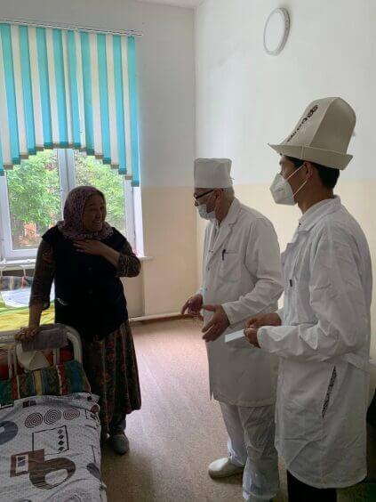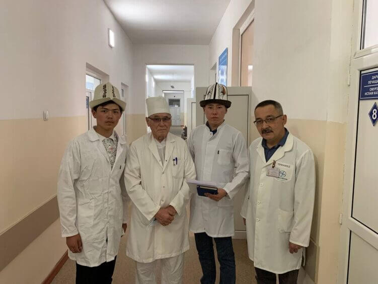 Раненные больные выразили огромную благодарность будущим медикам и заведующему кафедрой неврологии и нейрохирургии КГМА, академику НАН КР, профессору Миталип Мамытову и другим сотрудникам.