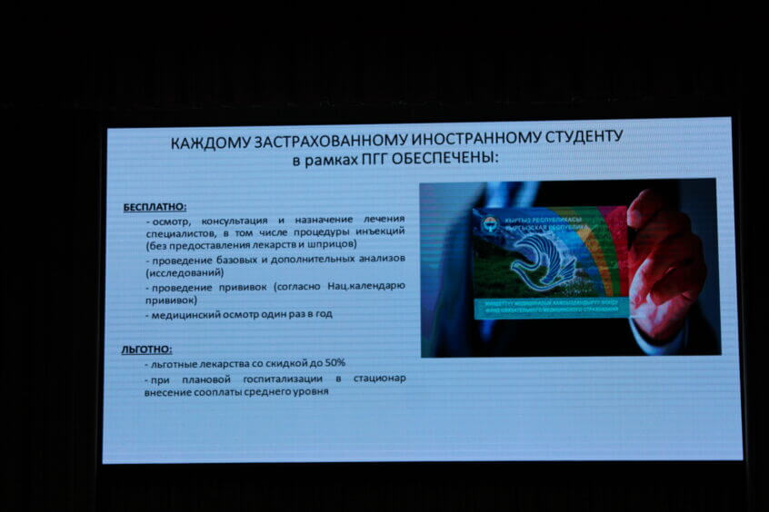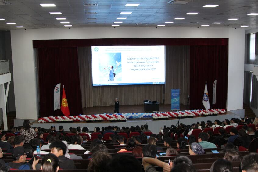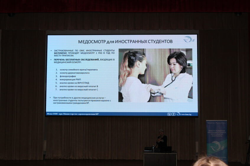 Сегодня, 3 октября 2024 года в конференц-холле КГМА им.И.К. Ахунбаева состоялась встреча представителя фонда ОМС (обязательное медицинское страхование)с иностранными студентами, проживающими или учащимися в нашей стране, для обеспечения им доступа к медицинским услугам.