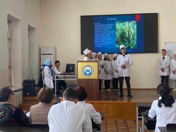В рамках реализации Программы развития государственного языка и совершенствование языковой политики КР, 7 октября сего года кафедра фармакогнозии и химии лекарственных средств КГМА провела научно-практическую конференцию «Бизди курчаган дары өсүмдүктөрү» посвященный ко дню государственного языка на кыргызском языке.