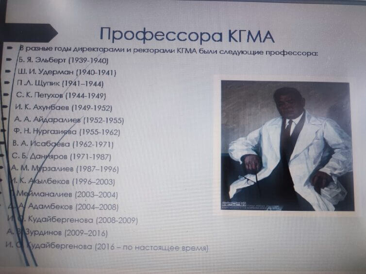 6 октября 2025 года доцент кафедры медицинской биологии, генетики и паразитологии Кыргызской государственной медицинской академии, к.б.н. Курсанбек Мамасалиевич Раимкулов, совместно со студентами курируемой 8-й группы педиатрического факультета, провёл семинар на тему «История КГМА».