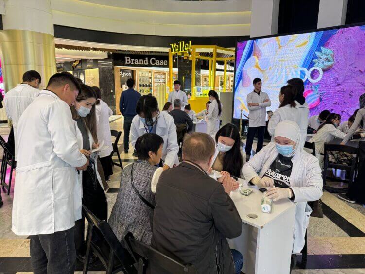 У посетителей и сотрудников торгового центра были выявлены факторы риска сахарного диабета, определен уровень глюкозы капиллярной крови, АД, ИМТ, окружности талии.