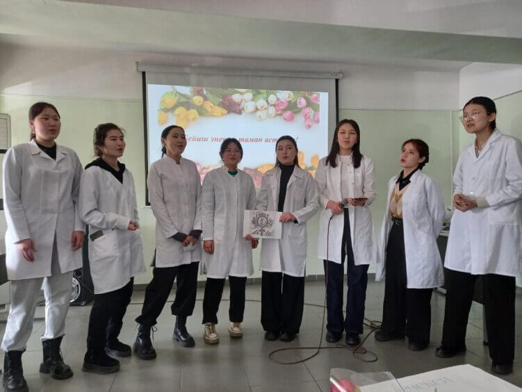 5 марта 2025 года преподавателями кафедры физики, математики, информатики и компьютерных технологий совместно с курируемыми группами 1 курса фармацевтического факультета провели мероприятие, посвященное Международному женскому дню 8 марта на тему «Рай под ногами матерей». С поздравительными словами выступили заведующая кафедрой Карашева Н.Т., декан фармацевтического факультета Табылдиева Ч.Т. и старший куратор кафедры Урусова Э.Б.