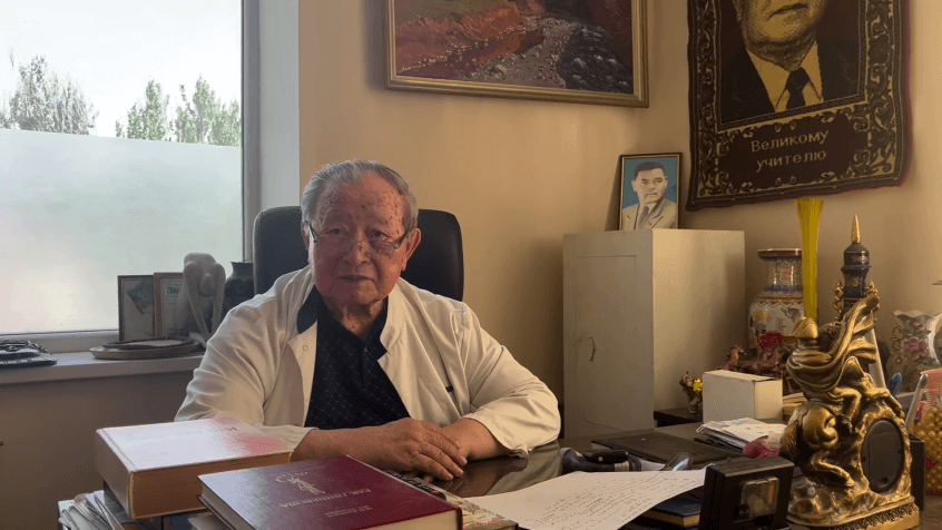 Поздравление Бебезова Хаким Сулаймановича. Он бывший заведующий кафедры онкологии КГМА им.И.К.Ахунбаева, заслуженный врач КР, д.м.н., профессор поздравляет с 85-летним юбилеем Медицинскую академию.