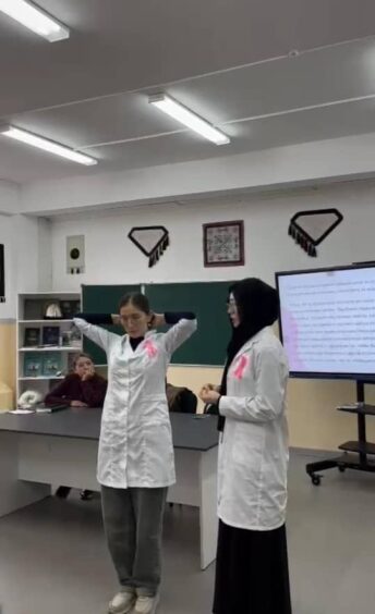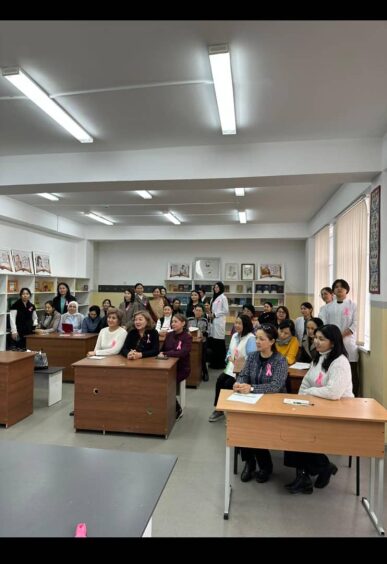 С презентацией на тему "Профилактика рака молочной железы" для женского коллектива школы выступили представители КГМА.