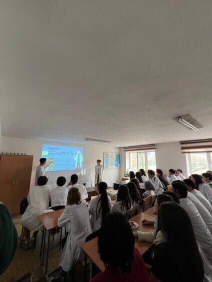 Ассистенты кафедры дерматовенерологии Медакадемии Кыргызстана Тилек Дилмуратович и Шамен Медетбекович вместе со студентами 4 курса факультета Лечебное дело Улукман Рыспаев и Медерина Нурмагамбетова провели серию открытых уроков по информированию о инфекциях, передающихся половым путем (ИППП) среди 10 и 11 классов в лицее при КГМА им. И.К.Ахунбаева.